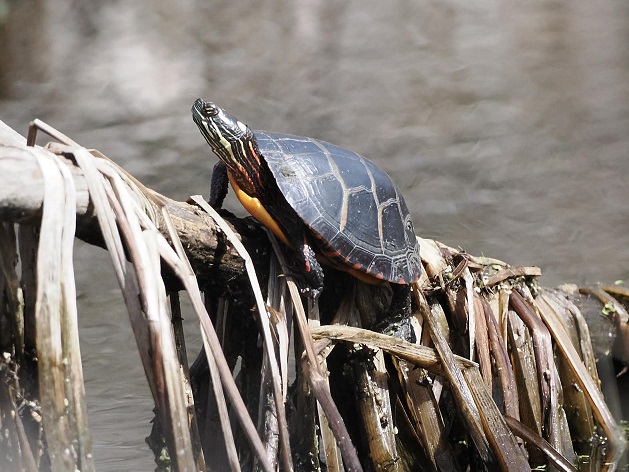Turtles are more evident now that the weather warms. Look for painted turtles soaking up the sun as they lie on partially submerged fallen trees in the water.