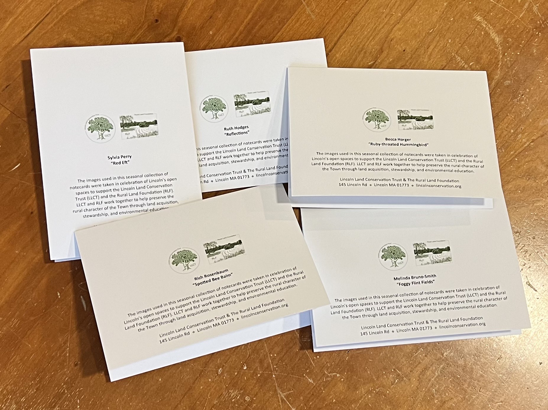 Note cards are sized 5″ x 3.5″. Photos vary. LLCT also has limited stock of larger 5.5×4 note cards. To request the larger size, send us an email after you order (llct@lincolnconservation.org)