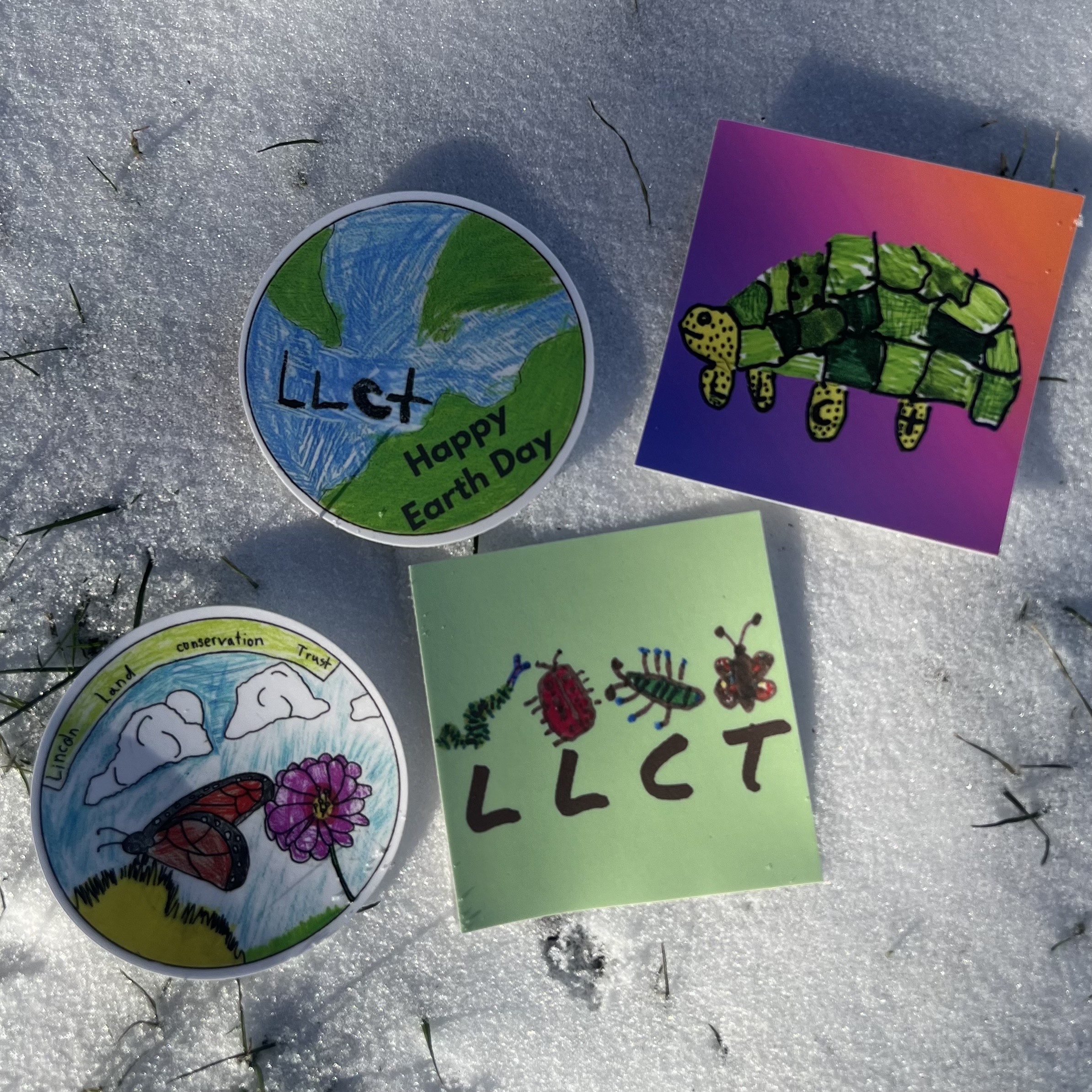 This sticker pack contains 4 original stickers designed by Lincoln students in grades K-3 as part of a town-wide contest.