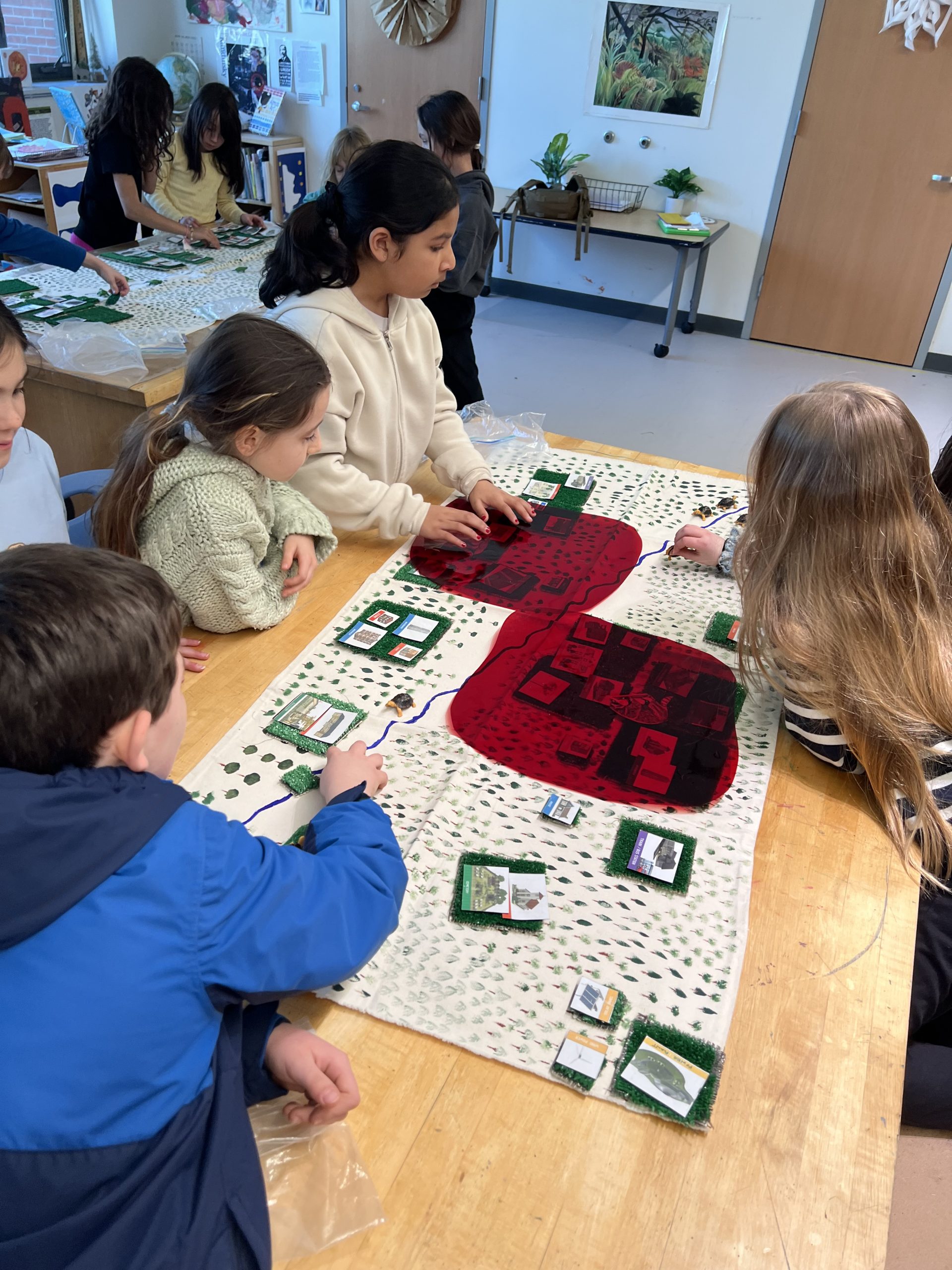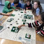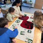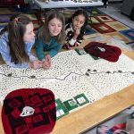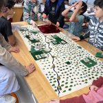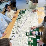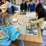 Let’s make a city: The student groups worked to create a city by laying out the pieces of paper representing “buildings” such as hospitals, fire stations, schools, grocery stores etc. They had fun working with their groups to design a place they themselves would like to live in.